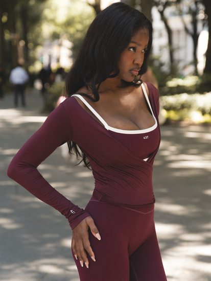 The Ballet Wrap brings timeless femininity to everyday movement. Crafted from lightweight, cooling modal with a touch of stretch for effortless movement, the Ballet Wrap was designed with a crossover neckline, self-tie waist, and full-length sleeves finished with subtle 437 embroidery at the wrist. Perfect layered over activewear or styled beyond the studio, this wrap offers a soft, breathable drape that flatters every silhouette.