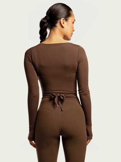 The Ballet Wrap brings timeless femininity to everyday movement. Crafted from lightweight, cooling modal with a touch of stretch for effortless movement, the Ballet Wrap was designed with a crossover neckline, self-tie waist, and full-length sleeves finished with subtle 437 embroidery at the wrist. Perfect layered over activewear or styled beyond the studio, this wrap offers a soft, breathable drape that flatters every silhouette.