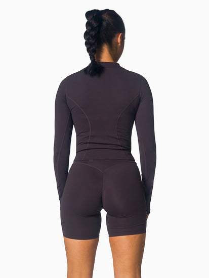 Fitted, long sleeve active jacket that hits just above the hip for a waist-elongating effect. Mock neckline, feminine seam details, and hourglass shape are designed to flatter your curves. Made with our sustainably sourced, moisture-wicking 437 cloudTM fabric and double-layered for full coverage.