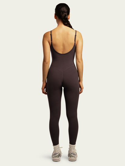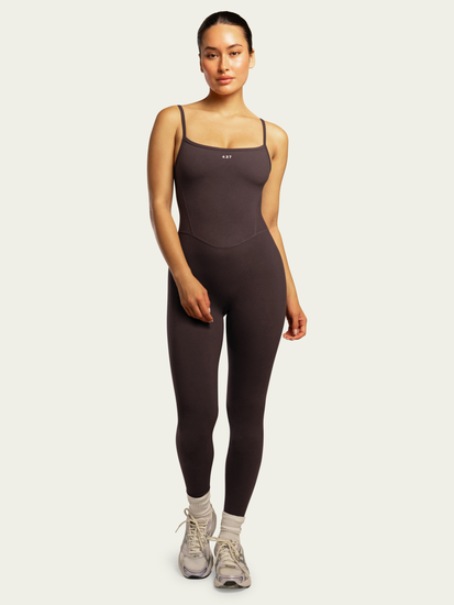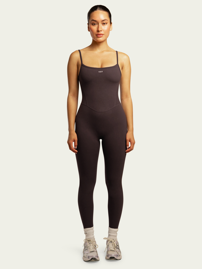 Our best selling style, now in our best selling colour - espresso. This tank-style onesie features seam detailing that contours and defines your curves. With adjustable straps, low neckline and 28" inseam, this onesie offers maximum comfort and support. Made sustainably with 437 cloud™ technology, giving it a second-skin feel you’ll love. Wear it solo or pair with any 437 item like the Zip Hoodie.