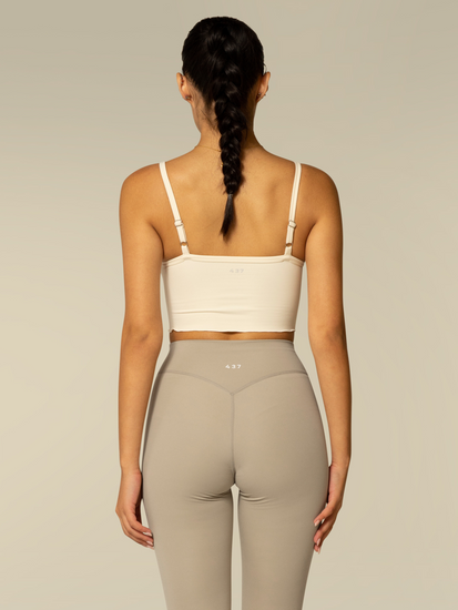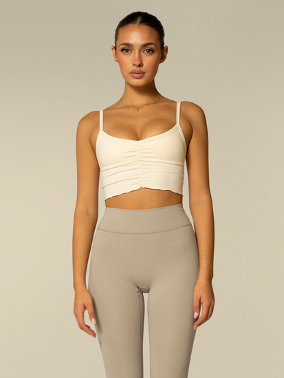 Designed with a feminine scrunch detail, a flattering lettuce-edge hem, adjustable straps and removable padding this bra is equal parts delicate and supportive. Perfect for low-impact days or layering under your favorites, made from our sweat wicking luxuriously soft 437 Cloud™ fabric.